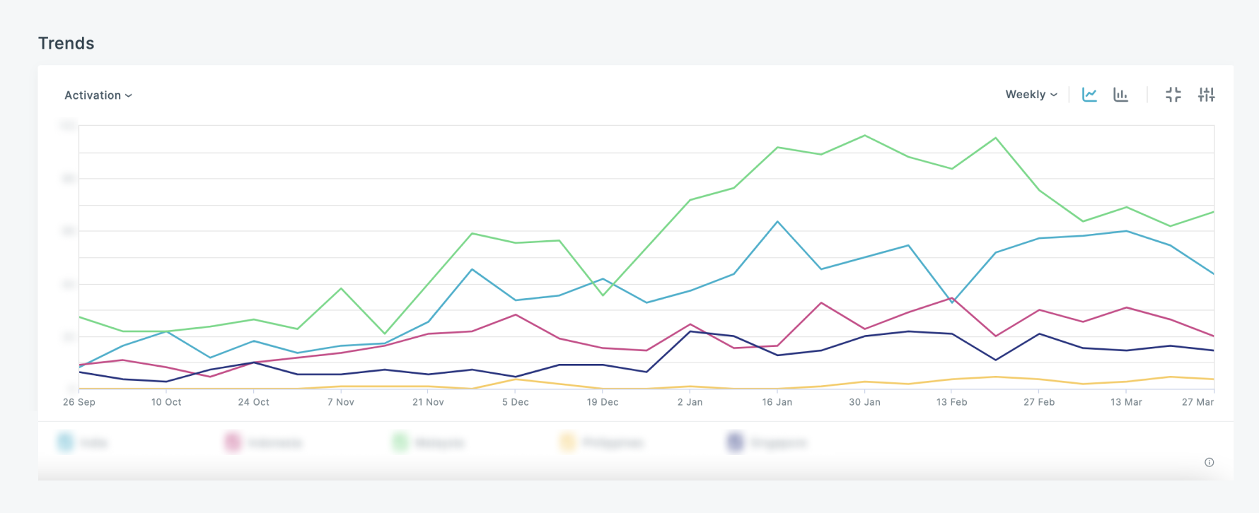 OctaFX integrated SplitMetrics Acquire into their standard workflow. They use the solution on a daily basis to monitor the growth of activations, changes in spend, and share of voice (SOV) to gauge the effectiveness of their campaigns. The following solutions in SplitMetrics Acquire played a crucial role in achieving the Client’s goals: