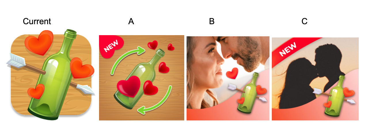 SplitMetrics Agency’s Team analyzed the app store product page of Spin the Bottle, and proposed a few hypotheses that were related to optimizing the app’s icon.