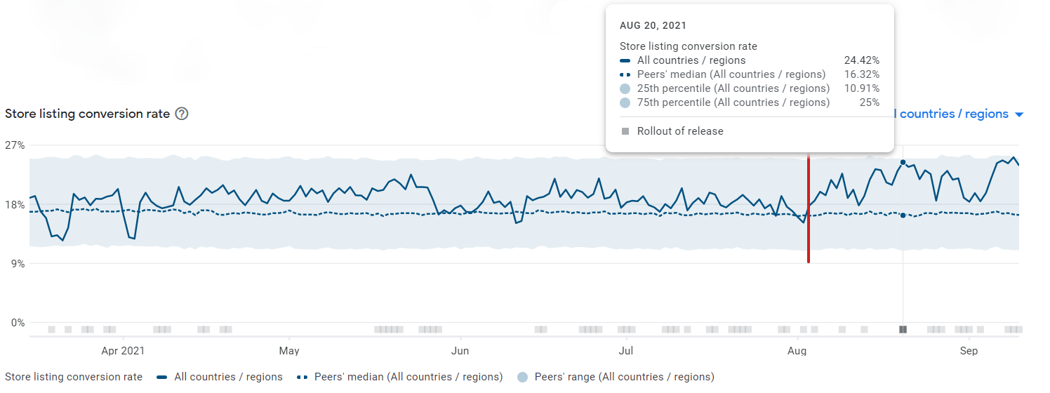 And the second graph demonstrates store listing conversion rate for the 180-day period March 17 – September 10 (180 days). User engagement increased significantly.