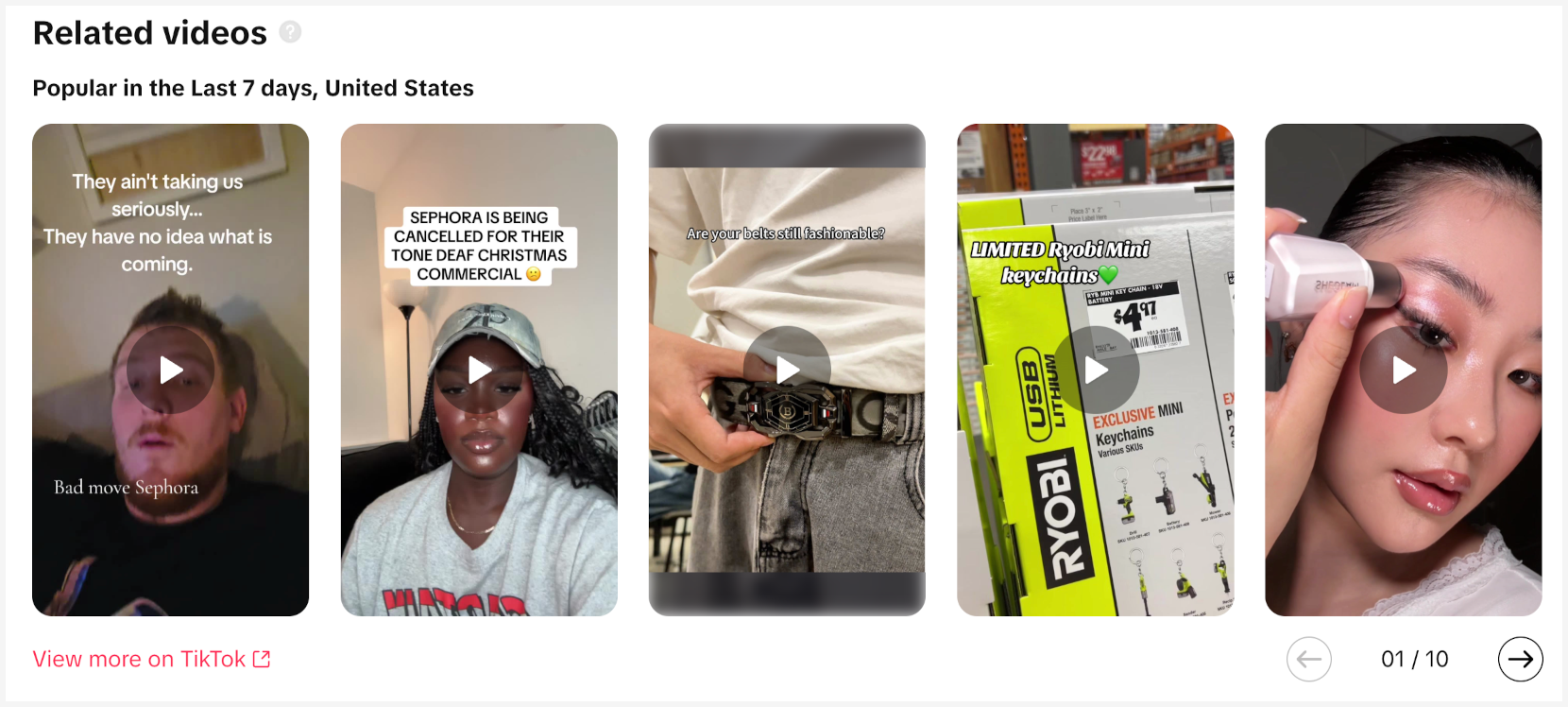 Examples of videos used in TikTok advertising, taken from the Ad Library.