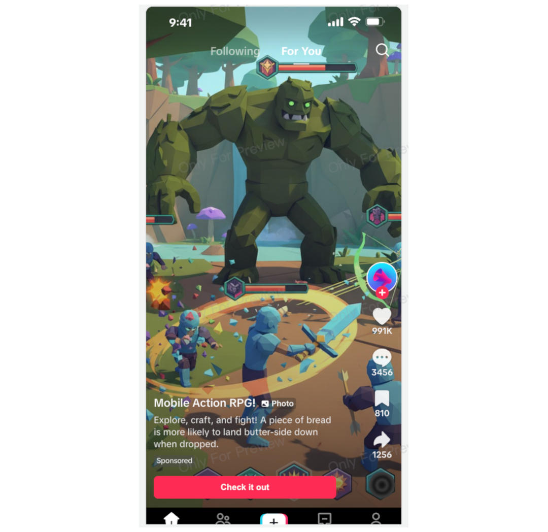 In terms of the interface, there’s little visual difference between Spark and Non-Spark Ads. The image was created with the Ad Preview tool of TikTok.