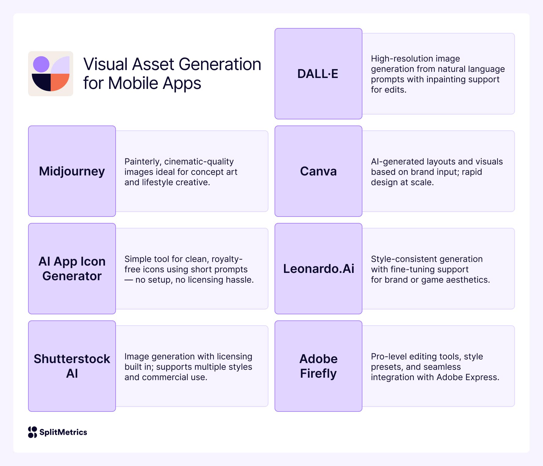 From app icons to screenshots and promo banners, these tools help turn prompts into visuals. Whether you’re building ASO assets or experimenting with creative directions, AI can now support your efforts.