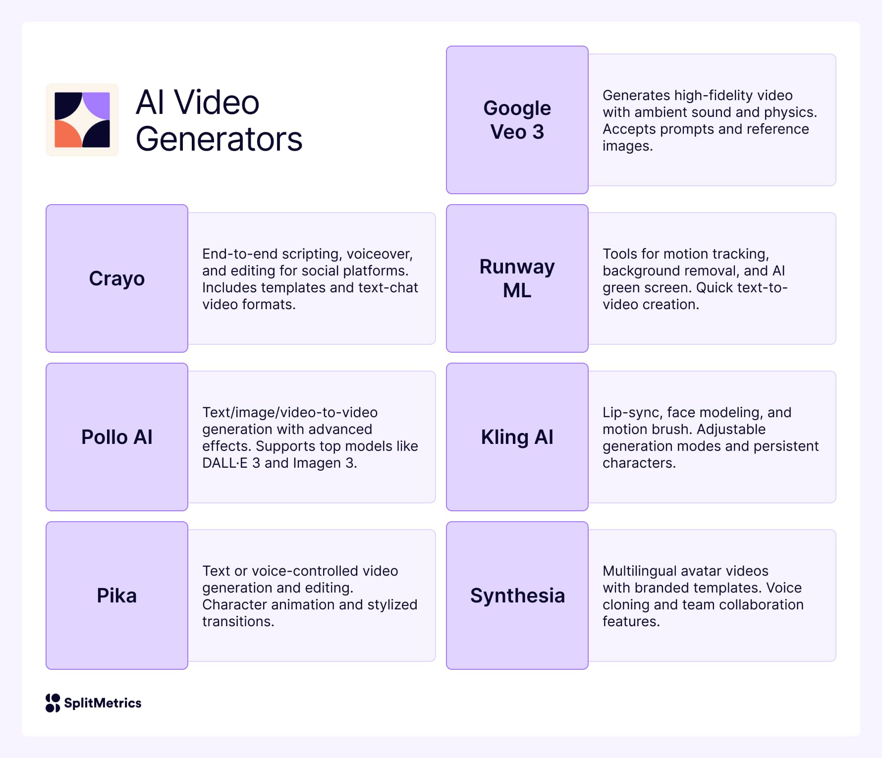 Need cinematic trailers, UGC-style promos, or animated explainers? This new wave of video AI tools lets you generate and edit video content — with support for scripting, voiceovers, camera movement, and character consistency.