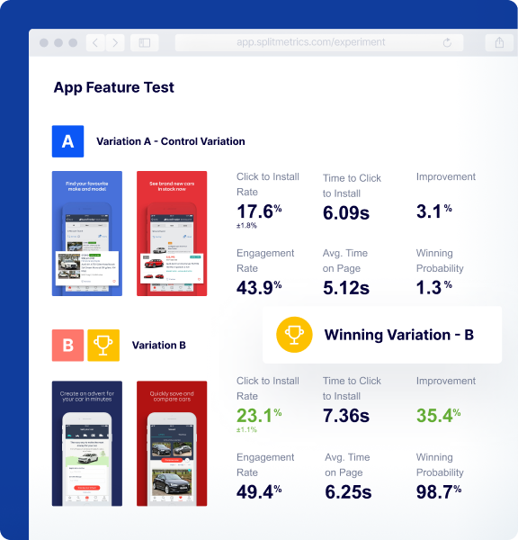 Drive quality installs, boost conversions, and maximize your mobile apps ROI with SplitMetrics Acquire.