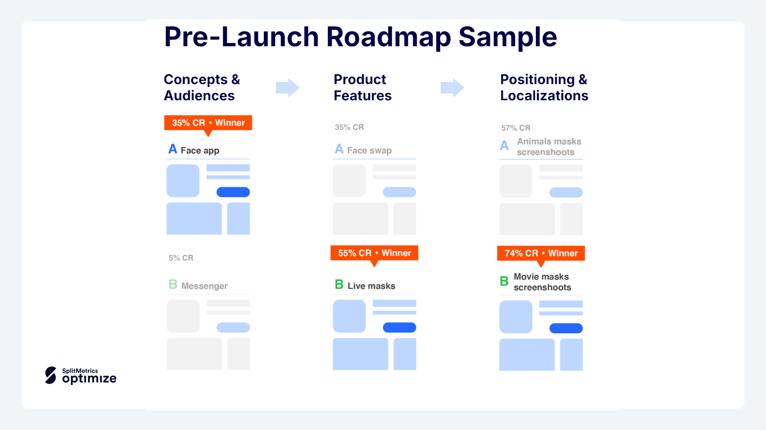 Sample pre-launch A/B testing roadmap, for SplitMetrics Optimize