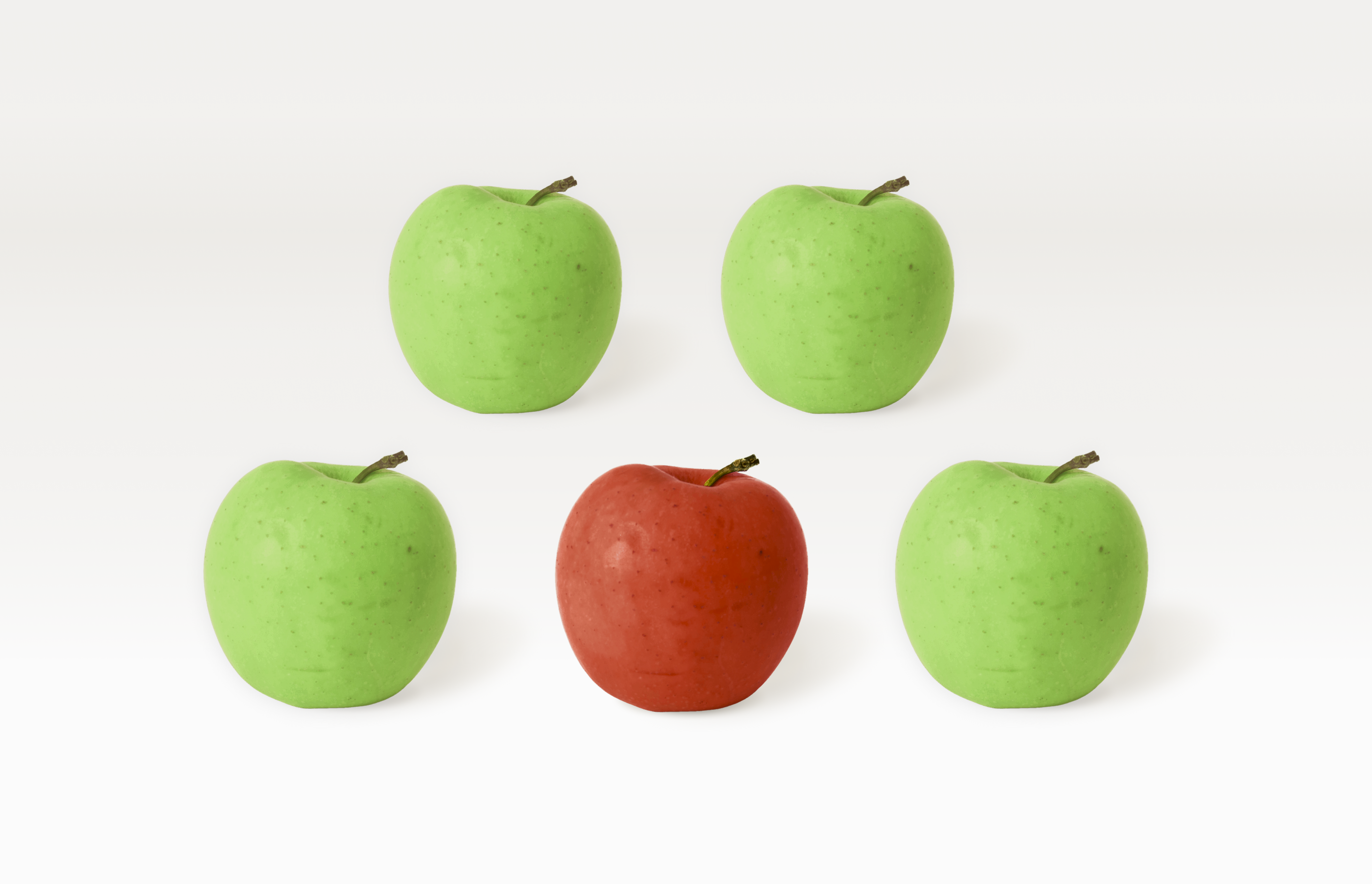 Another saliency pillar is orientation: our brain also notices objects that are arranged in an unusual way and counter to the alignment of their neighbours.