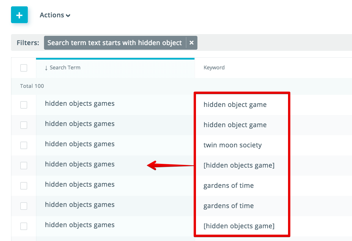 As you can see in the screenshot above, 3 different keywords of two different Match Types have generated one search term ‘hidden objects game’.