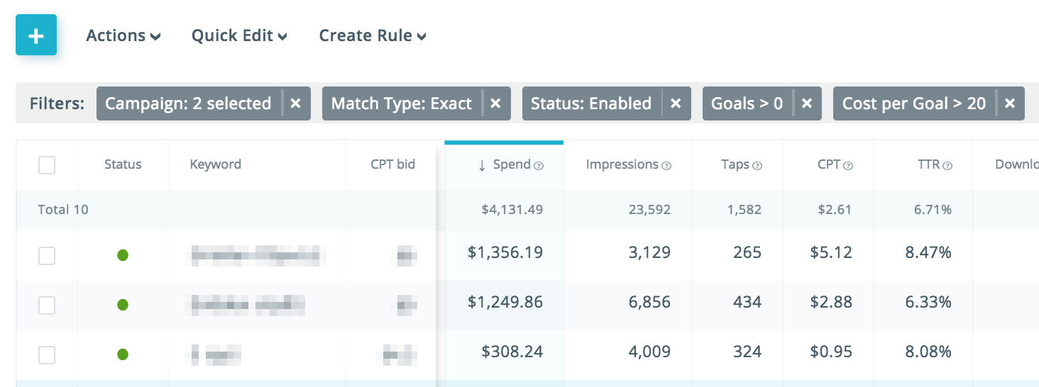 Now let’s explore some filters that help identify the keywords that drive your spend up.