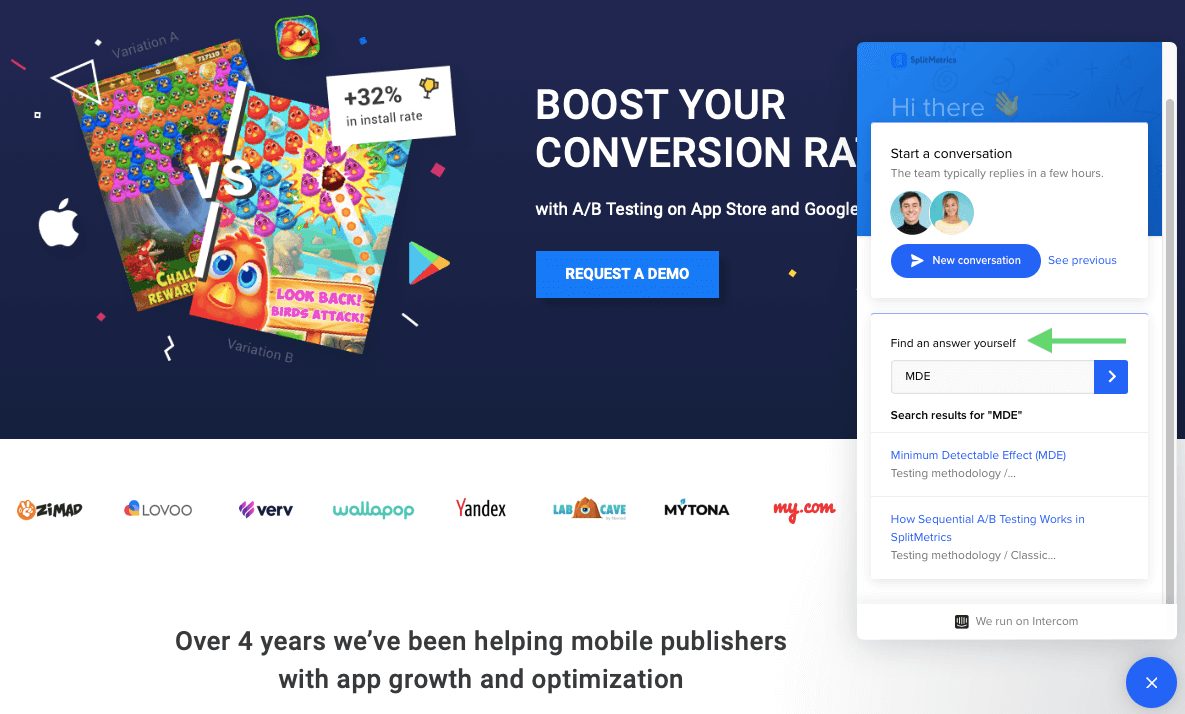 We’ve added an Intercom-based Help Centre to get you covered for all the information you might need to run A/B tests with SplitMetrics successfully.