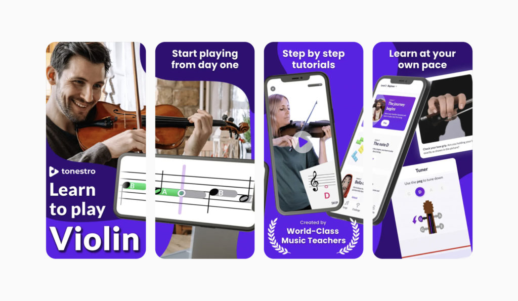 Violin Lessons by tonestro – app for learning how to play the violin with high-quality, step-by-step lessons, real-time feedback technology and a vast sheet music library.